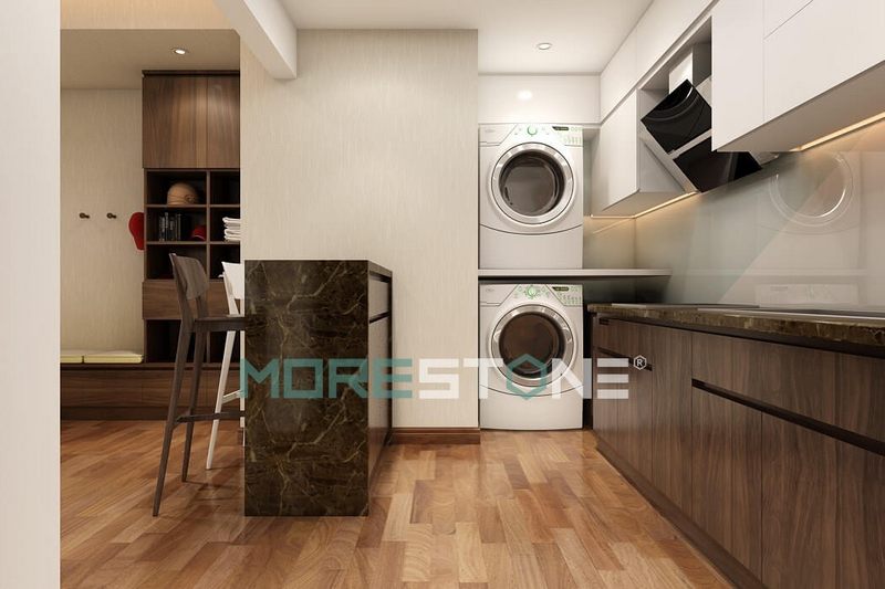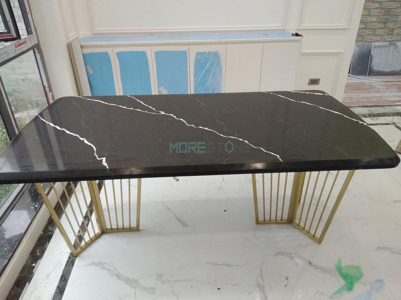 Chất liệu đá tự nhiên là lựa chọn tuyệt vời để sử dụng làm mặt bàn vì độ cứng cao và sáng bóng dễ dàng vệ sinh lại đẹp hiện đại với những đường vân ấn tượng.
